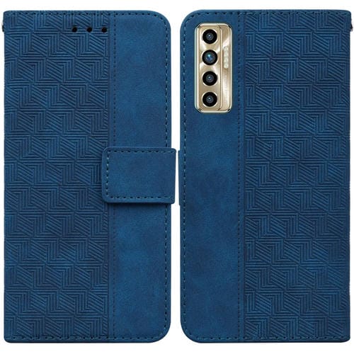 Funda para Tecno Camon 17P Caja de Cuero En Relieve Geométrico (Azul)