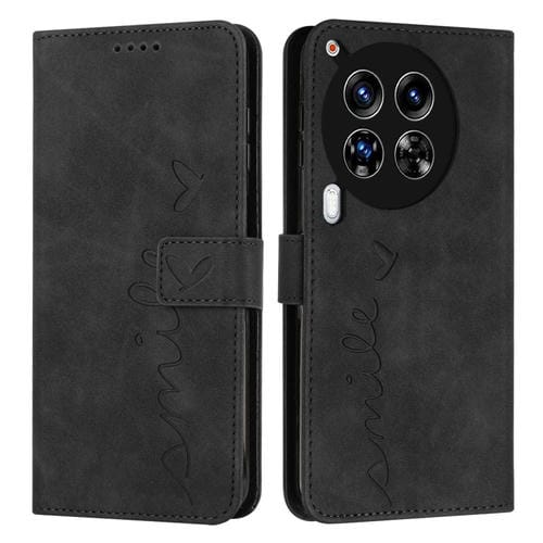 Funda para Tecno Camon 30 4G / 5G Skin Feel Heart Cuero En Relieve con Cordón Largo (Negro)