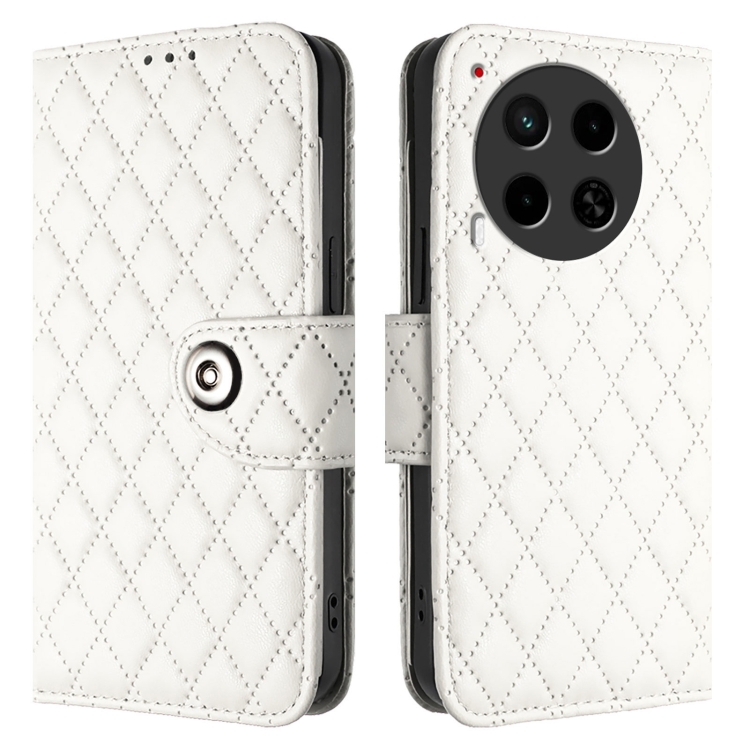 Funda para Tecno Camon 30 5G / 4G con Tapa de Cuero Textura Rómbica y Cordón (Blanco)