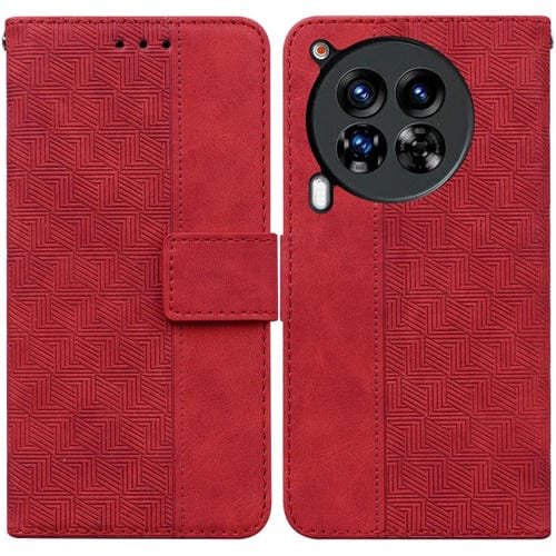 Funda de Cuero para Tecno Camon 30 Premier 5G con Relieve Geométrico (Rojo)