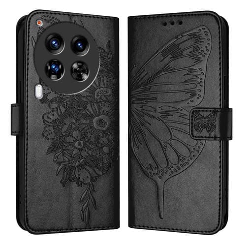 Funda de Cuero para Tecno Camon 30 Premier 5G con Mariposa en Relieve (Negro)