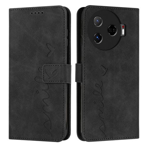 Funda para Tecno Camon 30 Pro 5G Skin Feel Heart de Cuero en Relieve con Cordón Largo (Negro)