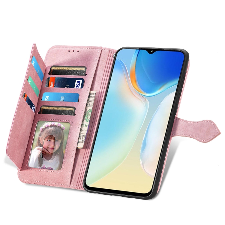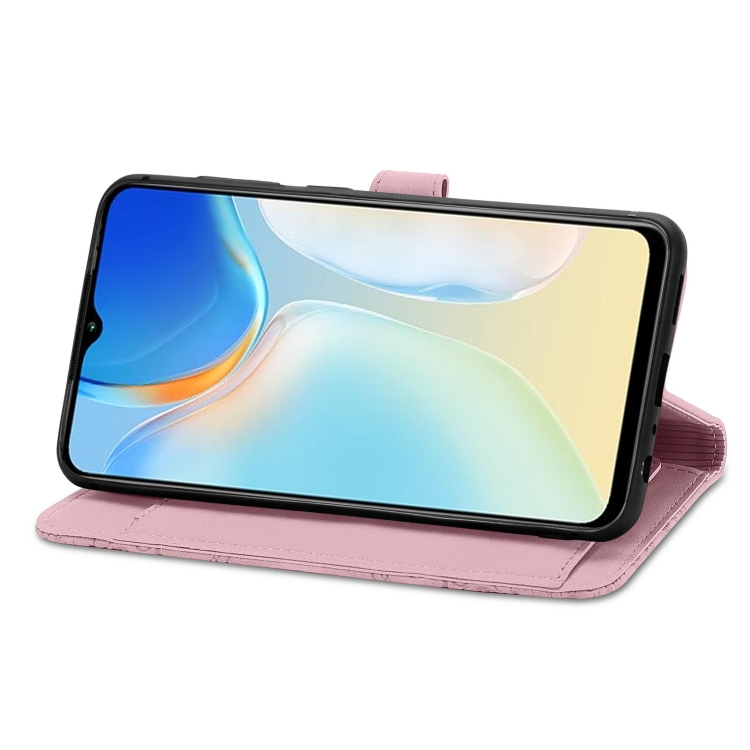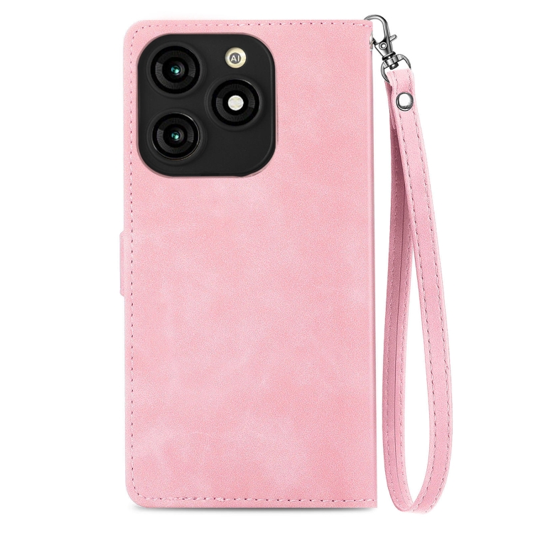 Funda de Cuero para Tecno Itel A70 con Cremallera y Flores en Relieve (Rosa)