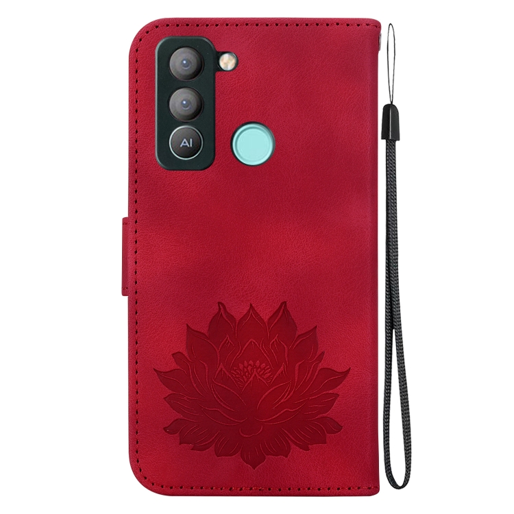 Funda de Cuero para Tecno Pop 5 LTE con Relieve Lotus (Rojo)
