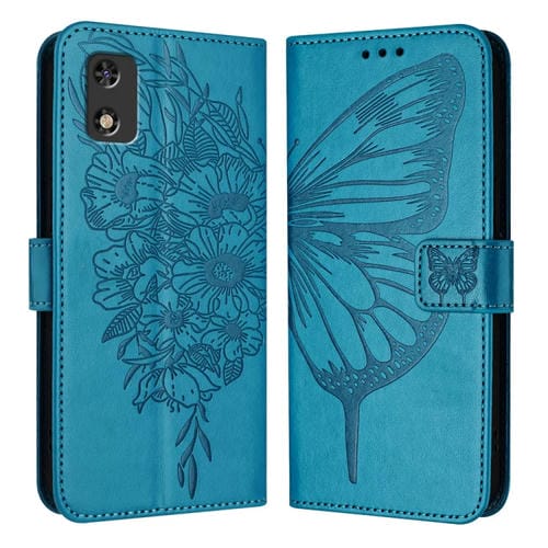Funda para Teléfono de Cuero Tecno Pop 5C Itel A23 Pro A17 con Mariposa en Relieve (Azul)