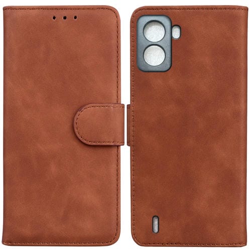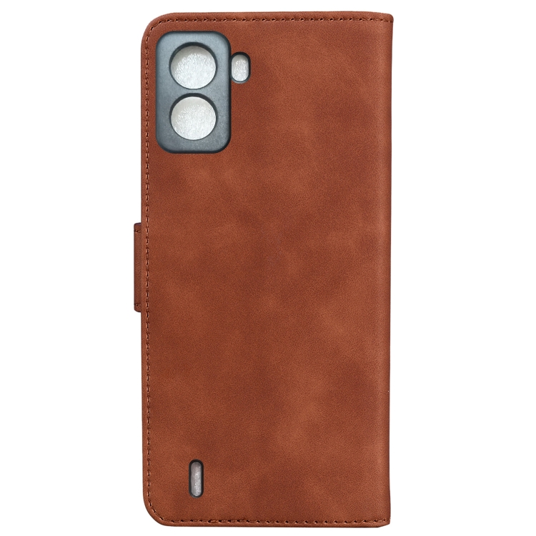 Funda de Cuero Flip para Tecno Pop 6 Skin Feel Pure Color (Marrón)