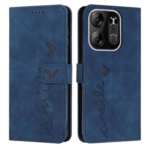 Funda de Cuero para Tecno Pop 7 Pro Skin Feel con Diseño Corazón (Azul)