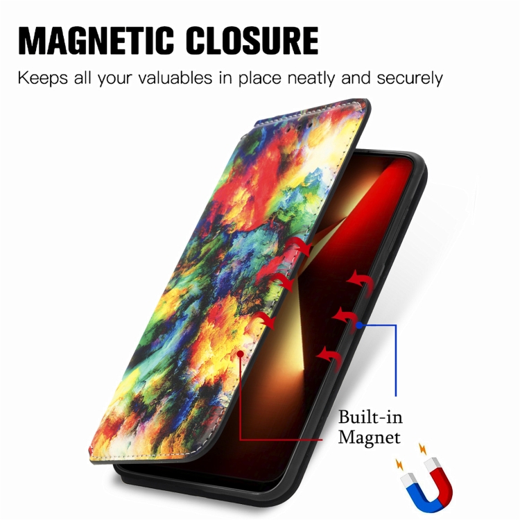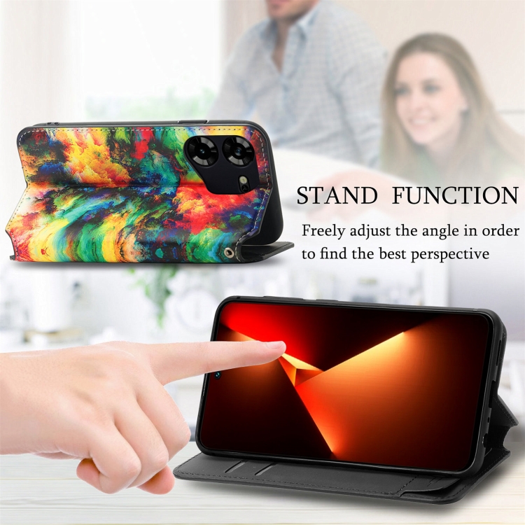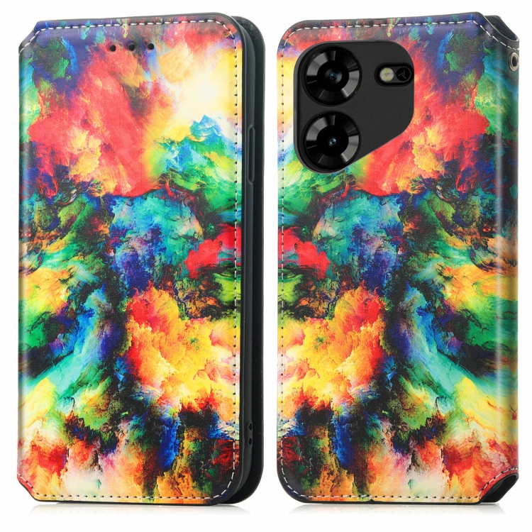 Funda de Cuero Magnética Caseneo para Tecno Pova 5 4G (Nube Colorida)
