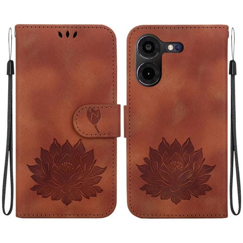 Funda de Cuero En Relieve para Tecno Pova 5 Pro Lotus (Marrón)
