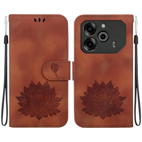 Funda de Cuero para Teléfono Tecno Pova 6 y Pova 6 Pro con Relieve de Loto (Marrón)