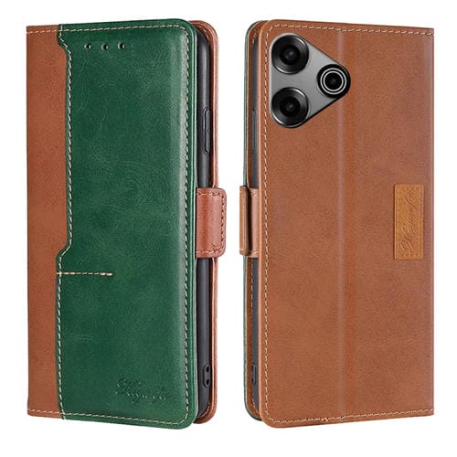 Funda de Cuero para Tecno Pova 6 Pro 5G con Hebilla Lateral y Contraste (Marrón Claro + Verde)