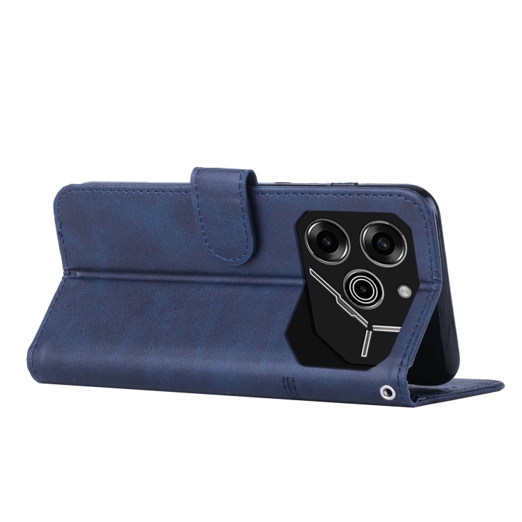 Funda para Tecno Pova 6 Pro de Cuero con Hebilla y Textura de Pantorrilla (Azul)