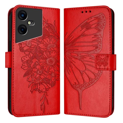 Funda de Cuero para Teléfono Tecno Pova Neo 3 con Mariposa en Relieve (Rojo)