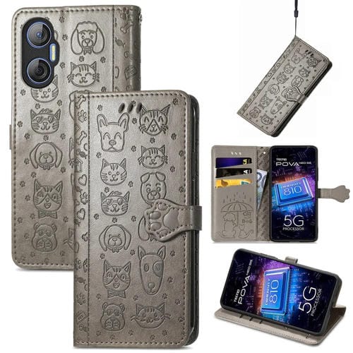 Funda de Cuero para Tecno Pova Neo 5G Cat And Dog en Relieve (Gris)