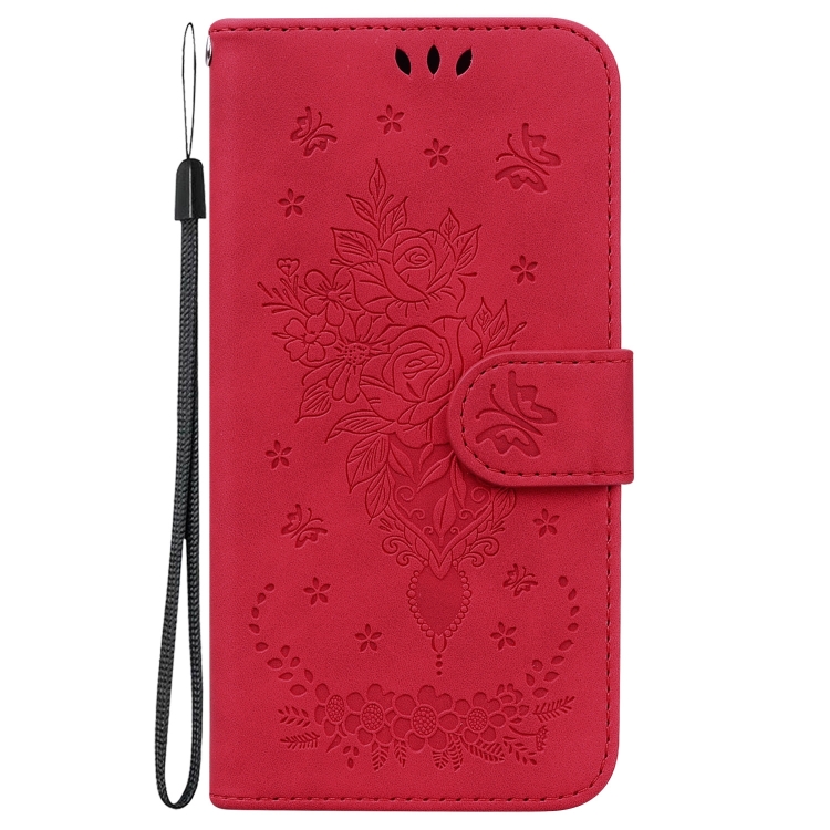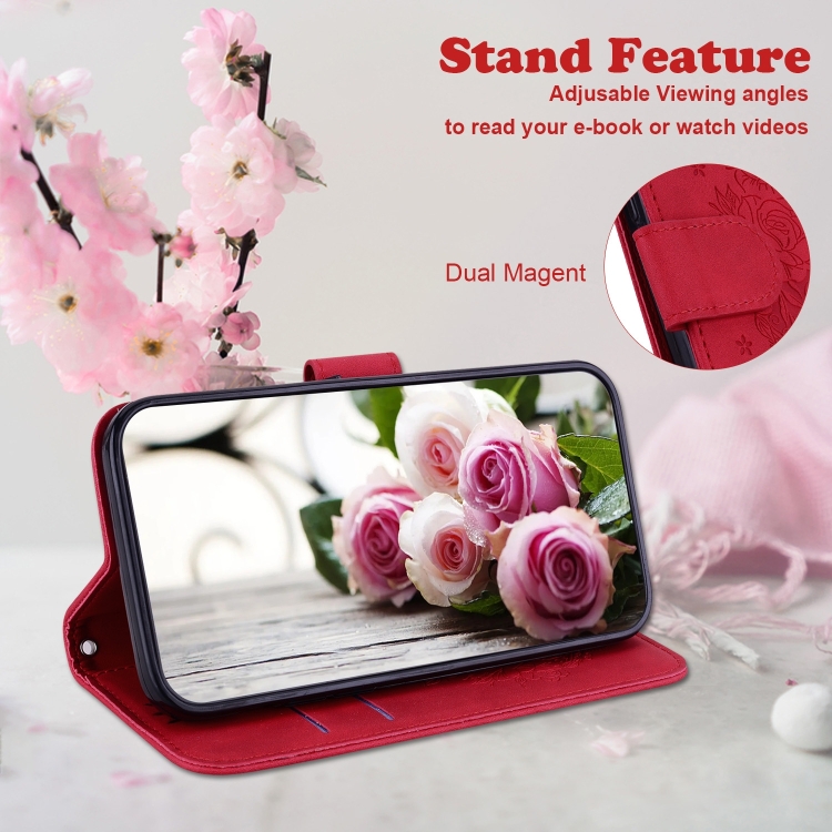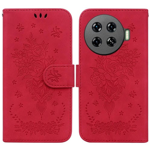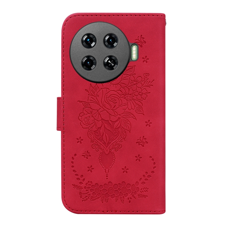 Funda de Cuero para Tecno Spark 20 Pro + 4G Butterfly Rose en Relieve (Rojo)
