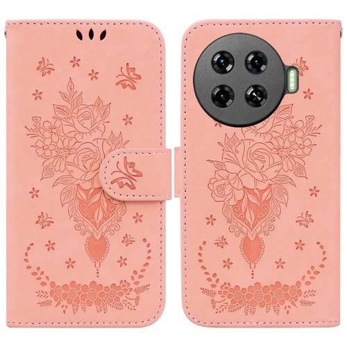 Funda de Cuero para Tecno Spark 20 Pro + 4G Butterfly Rose en Relieve (Rosa)