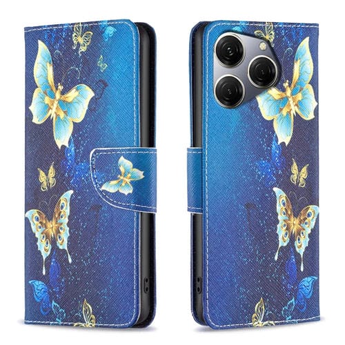 Funda de Cuero para Tecno Spark 20 Pro con Patrón de Dibujo Coloreado (Mariposa Dorada)