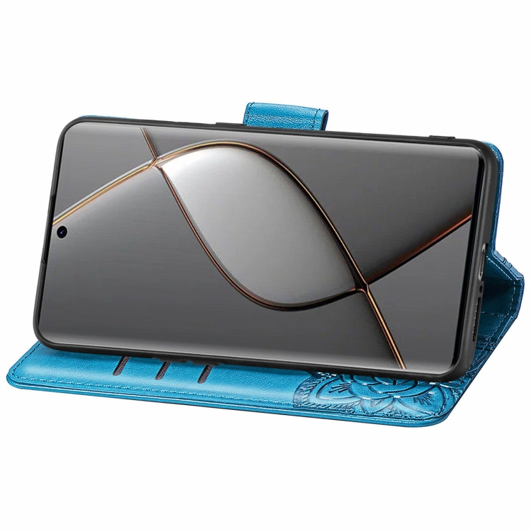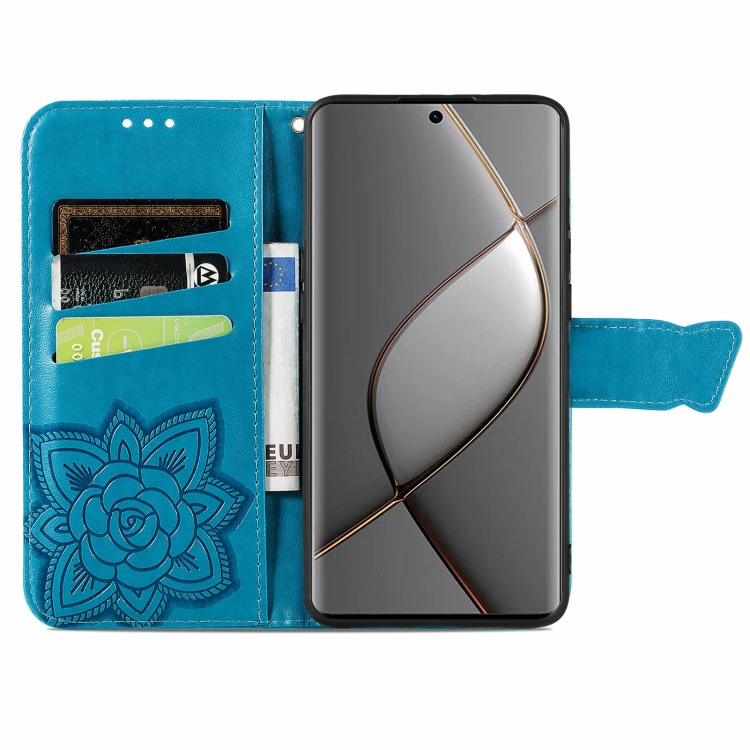 Funda para Tecno Spark 20 Pro de Cuero con Relieve Flor y Mariposa (Azul)