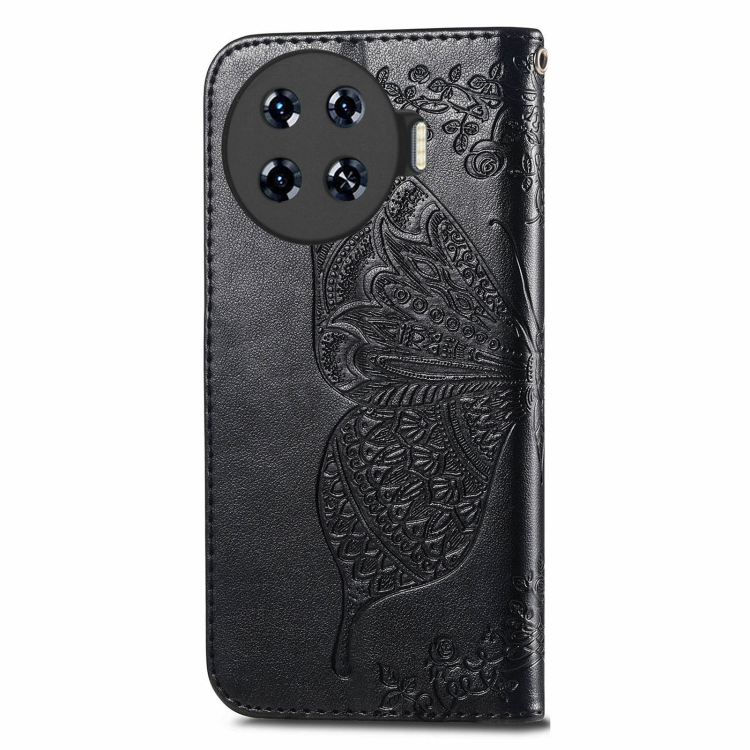 Funda para Teléfono + Tecno Spark 20 Pro + Cuero con Relieve de Flor y Mariposa (Negro)