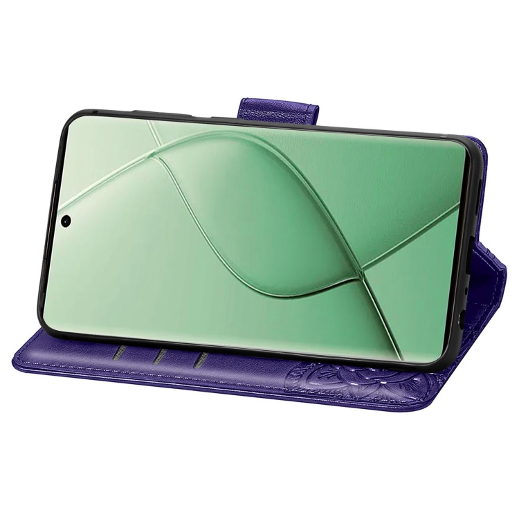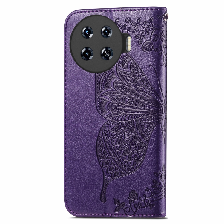 Funda para Tecno Spark 20 Pro de Cuero con Relieve de Flor y Mariposa (Púrpura Oscuro)