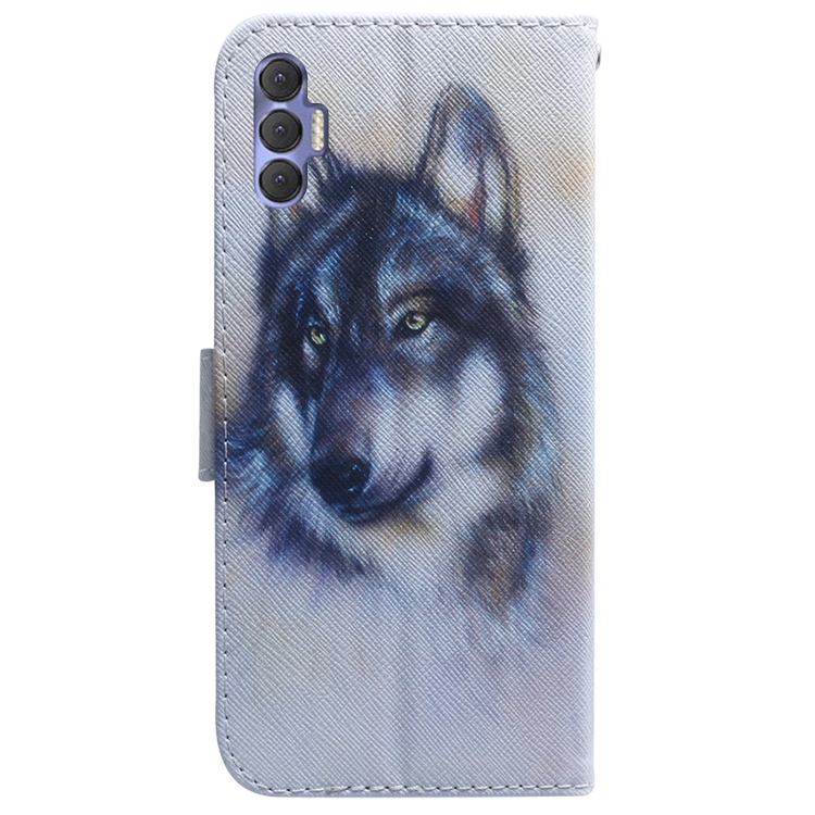 Funda de Cuero para Tecno Spark 8 Pro Colored Drawing (White Wolf)