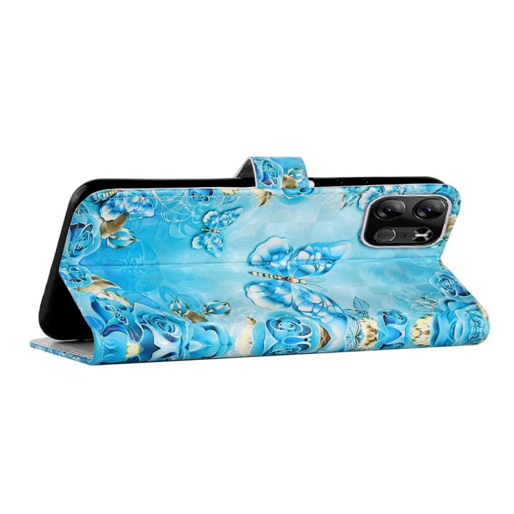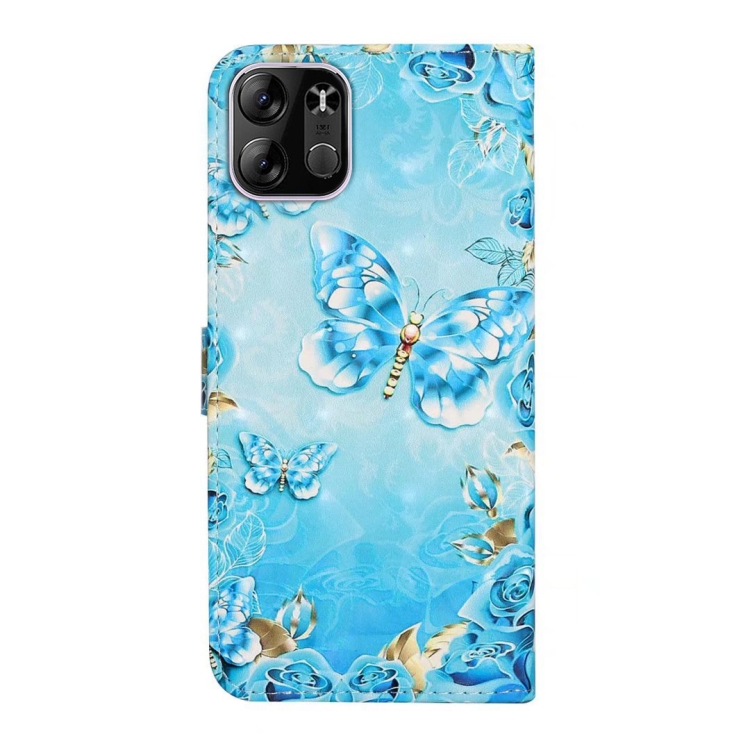 Funda de Cuero para Tecno Spark Go 2023 con Dibujo 3D en Relieve al Óleo (Mariposas Azules)