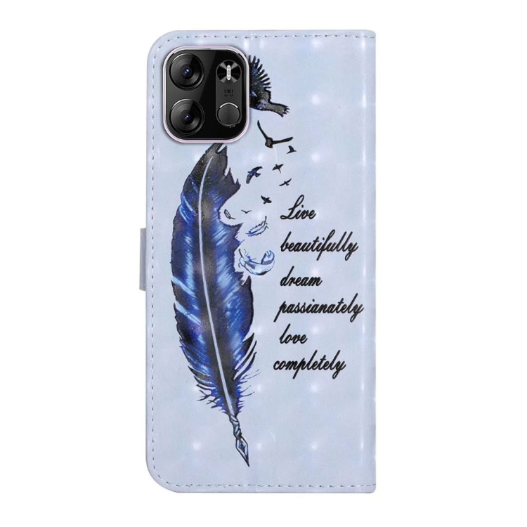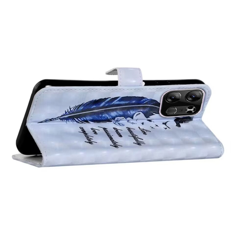 Funda de Cuero para Tecno Spark Go 2023 con Dibujo 3D en Relieve al Óleo (Pluma Azul)