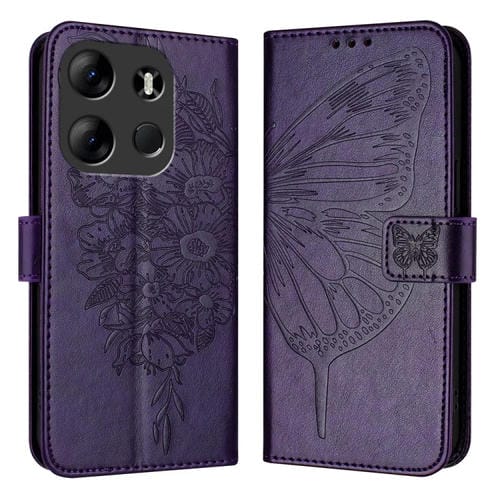 Funda para Tecno Spark Go 2023 Pop 7 Pop 7 Pro de Cuero con Mariposa en Relieve (Púrpura Oscuro)