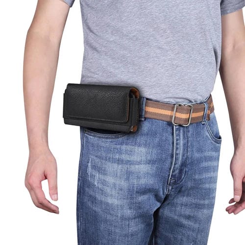 For 4.7-5.4 inch mobile phone cowhide texture Oxford cloth horizontal waist bag (black)