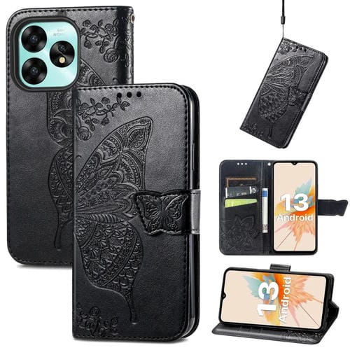 Funda para Umidigi A13 Pro 5G Cuero Relieve Flor y Mariposa (Negro)