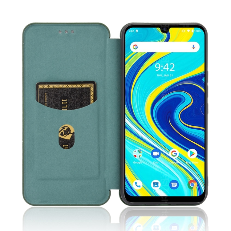 Carcasa para Umidigi A7 Pro Cuero Fibra de Carbono Magnética Tapa Horizontal TPU + PC + PU con Ranura para Tarjeta (Verde)