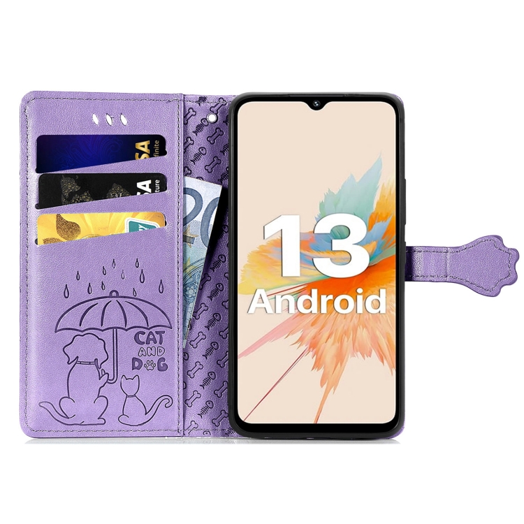 Funda de Cuero para Umidigi G3 G3 Max G3 Plus con Relieve Perros y Gatos (Púrpura)