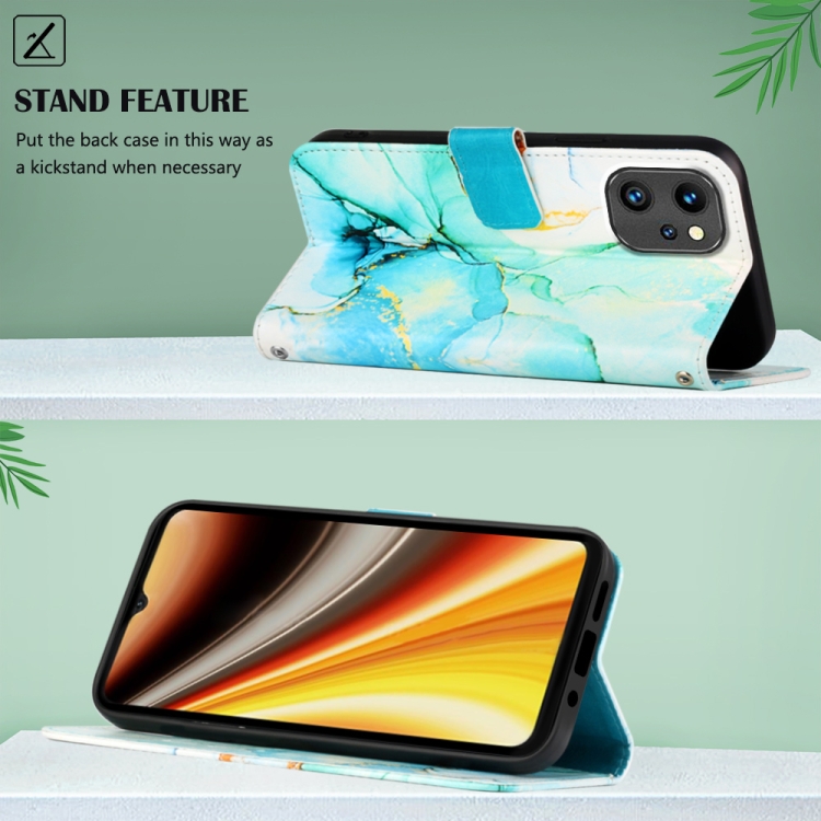 Funda para Umidigi Power 7 Max Pt003 con Tapa de Cuero y Patrón Mármol (Verde)