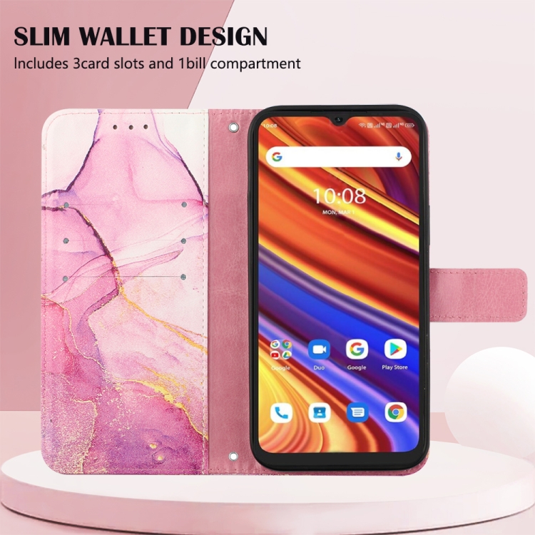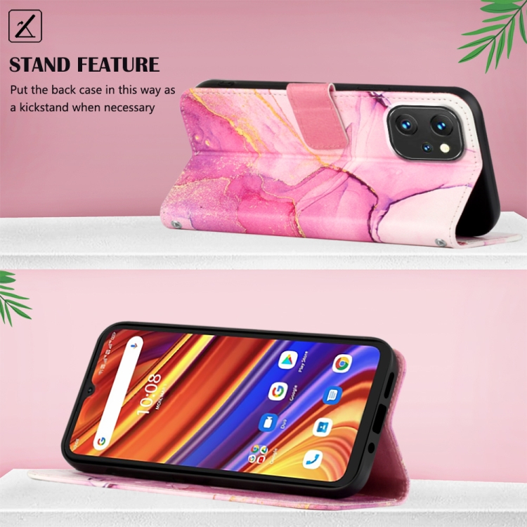 Funda para Umidigi Power 7/Power 7S Pt003 con Tapa de Cuero y Patrón Mármol (Rosa Púrpura Dorado)