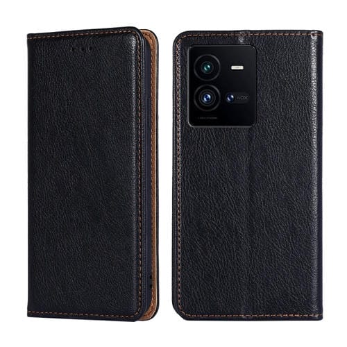 Para Vivo Iqoo 10 Pro 5G Estuche para Teléfono de Cuero Magnético de Color Sólido con Aceite Brillante (Negro)