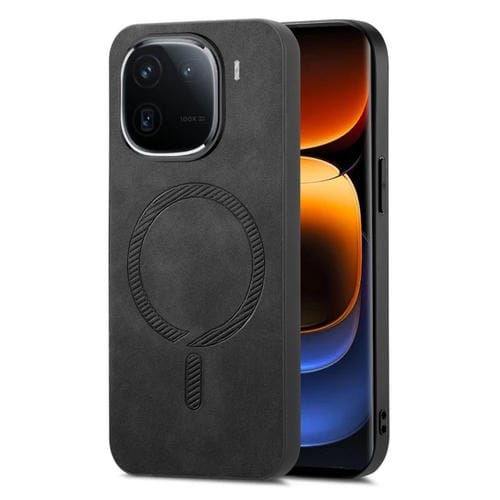 Para Vivo Iqoo 12 5G Retro Magsafe Funda para Teléfono con Contraportada Magnética de Pu (Negro)