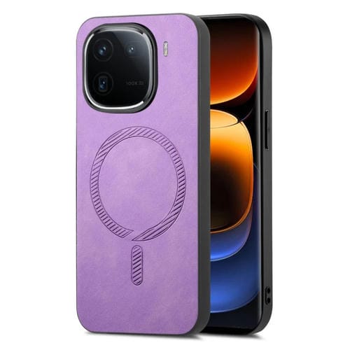 Para Vivo Iqoo 12 5G Retro Magsafe Funda para Teléfono con Contraportada Magnética de Pu (Púrpura)