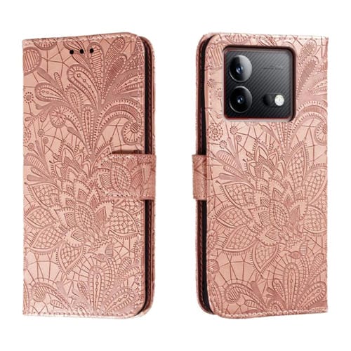 Para Vivo Iqoo Neo8 Funda para Teléfono de Cuero con Tapa y Estampado de Flores de Encaje (Oro Rosa)