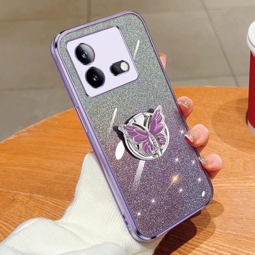 Para Vivo Iqoo Neo8 Funda para Teléfono de TPU con Soporte de Mariposa con Brillo Degradado Plateado (Púrpura)