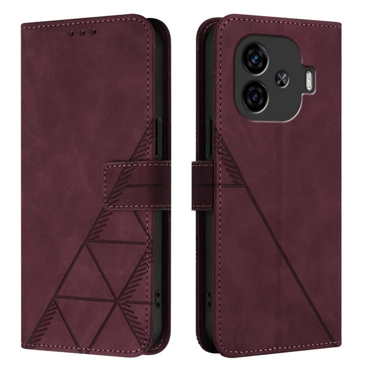 Para Vivo Iqoo Z9 5G / Iqoo Z9 Turbo 5G Funda para Teléfono de Cuero con Tapa En Relieve 3D Cruzada (Rojo Vino)