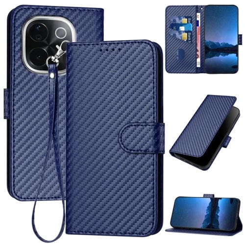 Funda de Cuero con Hebilla de Fibra de Carbono y Cordón para Vivo Iqoo Z9S Pro / T3 Pro 5G India Yx0070 (Azul Real)