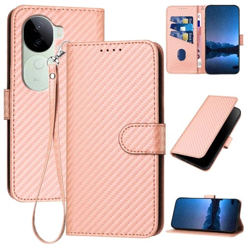 Funda de Cuero con Hebilla de Fibra de Carbono y Cordón para Vivo Iqoo Z9S/V40E (India Yx0070) (Rosa)