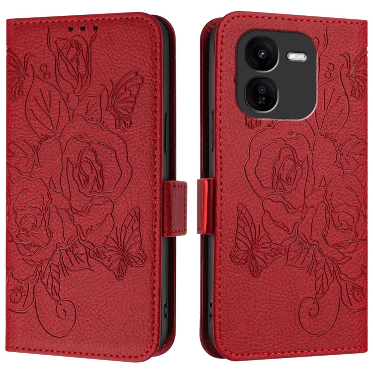 Para Vivo Iqoo Z9X Estuche para Teléfono de Cuero Antirrobo Rfid con Rosa En Relieve (Rojo)