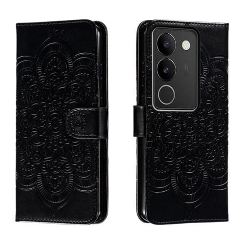 Para Vivo S17 Sun Mandala Funda de Cuero para Teléfono con Patrón En Relieve (Negro)