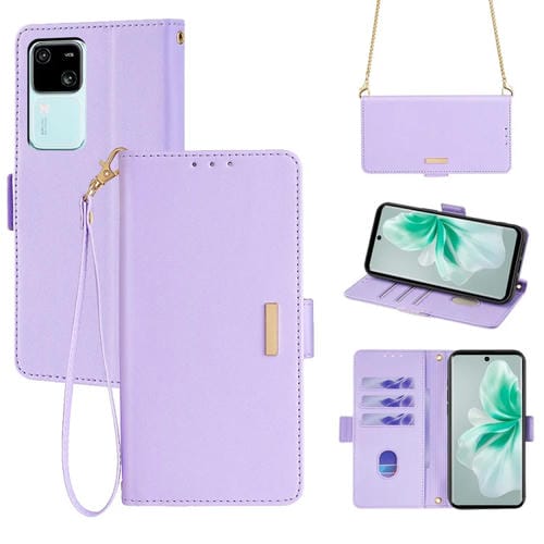 Para Vivo S18 5G / S18 Pro 5G Funda para Teléfono de Cuero con Cadena Cruzada (Púrpura)