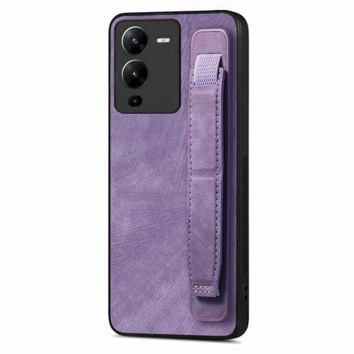 Para Vivo V25 Pro Retro Muñequera Funda Trasera de Cuero para Teléfono (Púrpura)