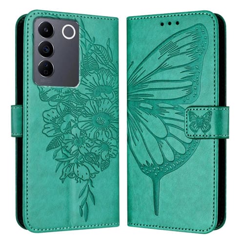 Para Vivo V27 5G / V27 Pro 5G Funda para Teléfono de Cuero con Mariposa En Relieve Global (Verde)