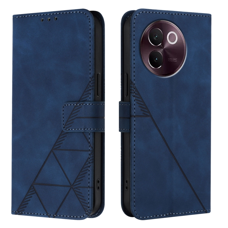 Para Vivo V30E 5G Global Crossbody Funda para Teléfono de Cuero con Tapa En Relieve 3D (Azul)