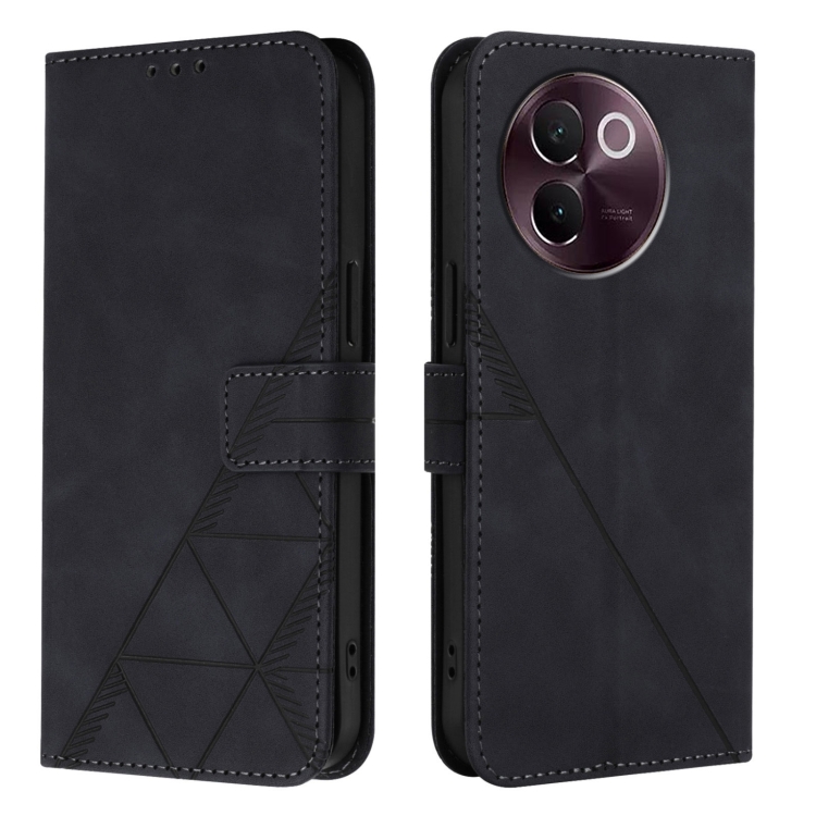 Para Vivo V30E 5G Global Crossbody Funda para Teléfono de Cuero con Tapa En Relieve 3D (Negro)