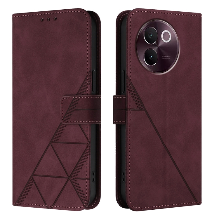 Para Vivo V30E 5G Global Crossbody Funda para Teléfono de Cuero con Tapa En Relieve 3D (Rojo Vino)